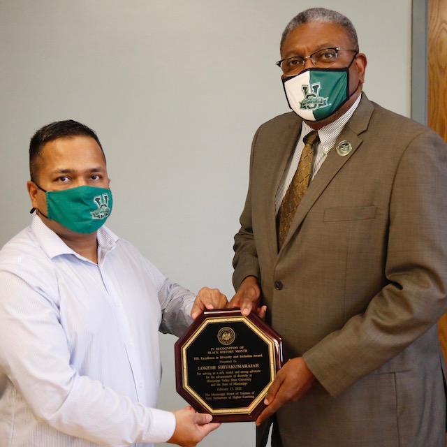 The Honorable David L. Jordan, Senator, Mississippi State Senate, who is a graduate of MVSU, received the Karen Cummins Community Service Award, and Lokesh Shivakumaraiah, Ph.D., Executive Director of International Relations and Assistant to Provost at MVSU was also honored as the faculty member at MVSU who has worked to advance diversity.