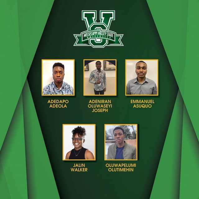 Jalin Walker, Baton Rouge, LA. (Mathematics/Math Education); Emmanuel Asuquo, Nigeria (Computer Science & Mathematics); Adeapo Adeola, Nigeria (Computer Science & Mathematics); Adeniran Oluwaseyi Joseph, Nigeria (Computer Science and Mathematics) Oluwapelumi Olutimehin, Lagos, Nigeria (Computer Science); and Onyebuchi Oparanadu, Lagos, Nigeria (Computer Science and Mathematics).