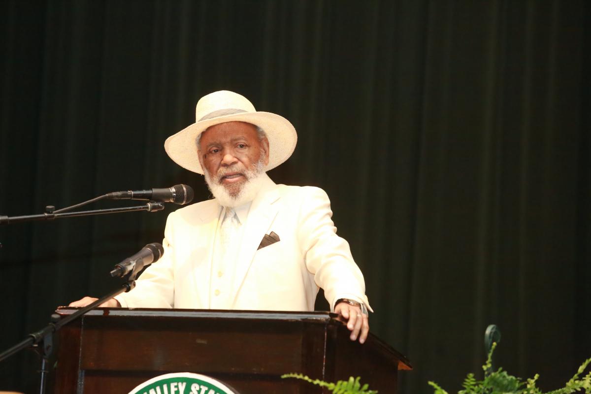 ITTA BENA, Miss— James Meredith, garbed in a complementary white suit and hat, stood tall while addressing the Mississippi Valley State University community during its 2018 Honors Convocation Thursday, March 22, in the Walter Roberts Auditorium.