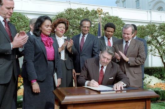 After hotly contested debates in both the United States House of Representatives and the United States Senate, Ronald Reagan, 40th President of the United States of America, signed into law on Nov. 2, 1983, Hall's version of "The King Bill".