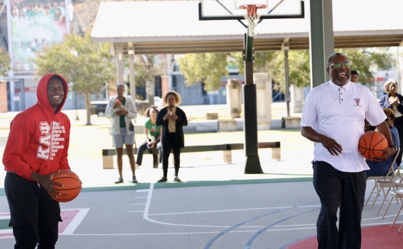 Dr. Jerryl Briggs, the President of Mississippi Valley State University, shared his thoughts on how much of a great addition he believes the outdoor basketball pavilion is to the campus.