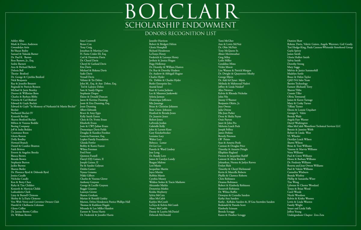 The scholarship was established from contributions in memory of Nathaniel A. Boclair, III. The family established the scholarship with the initial $25-thousand requirement within five weeks of setting up the endowment.